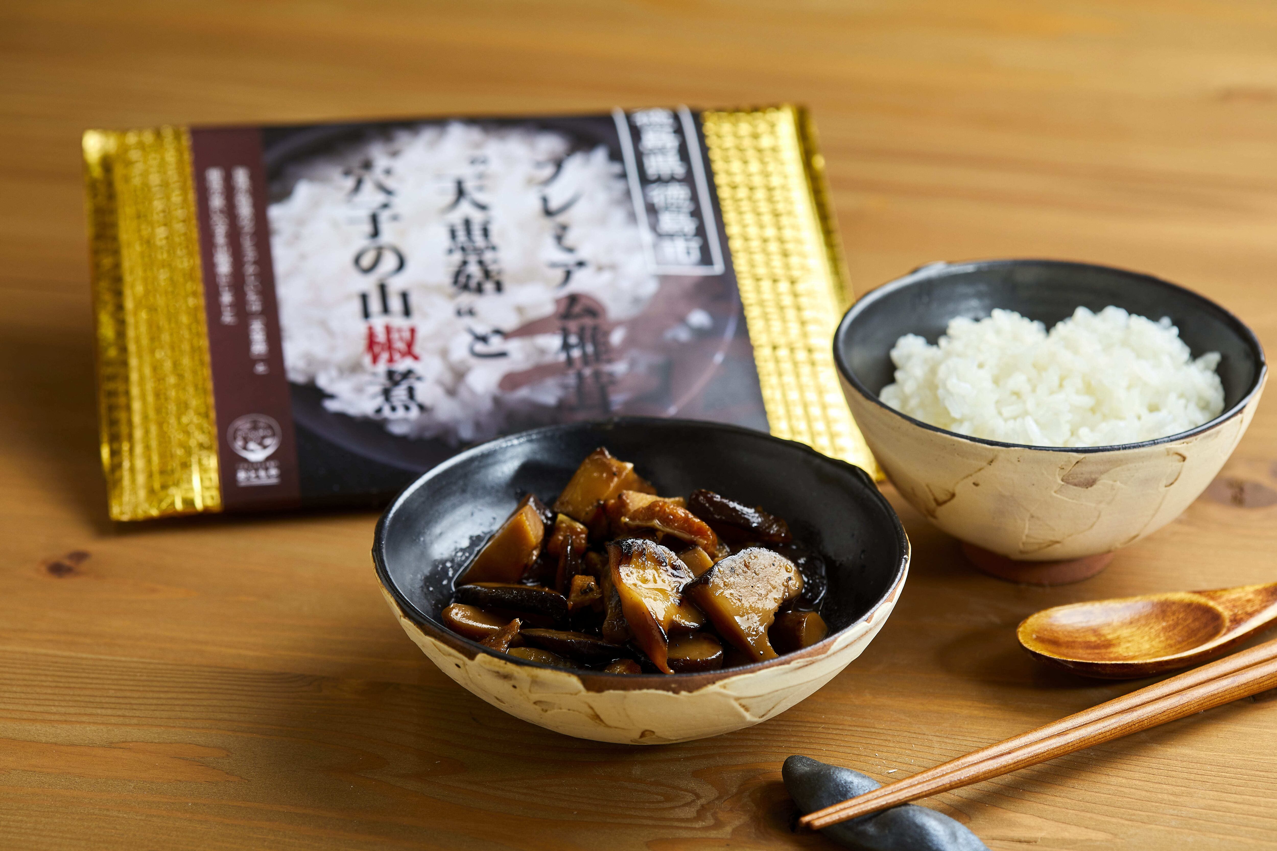 旨味が特徴のプレミアムしいたけ「天恵菇」と相性の良い穴子を山椒煮にしました。