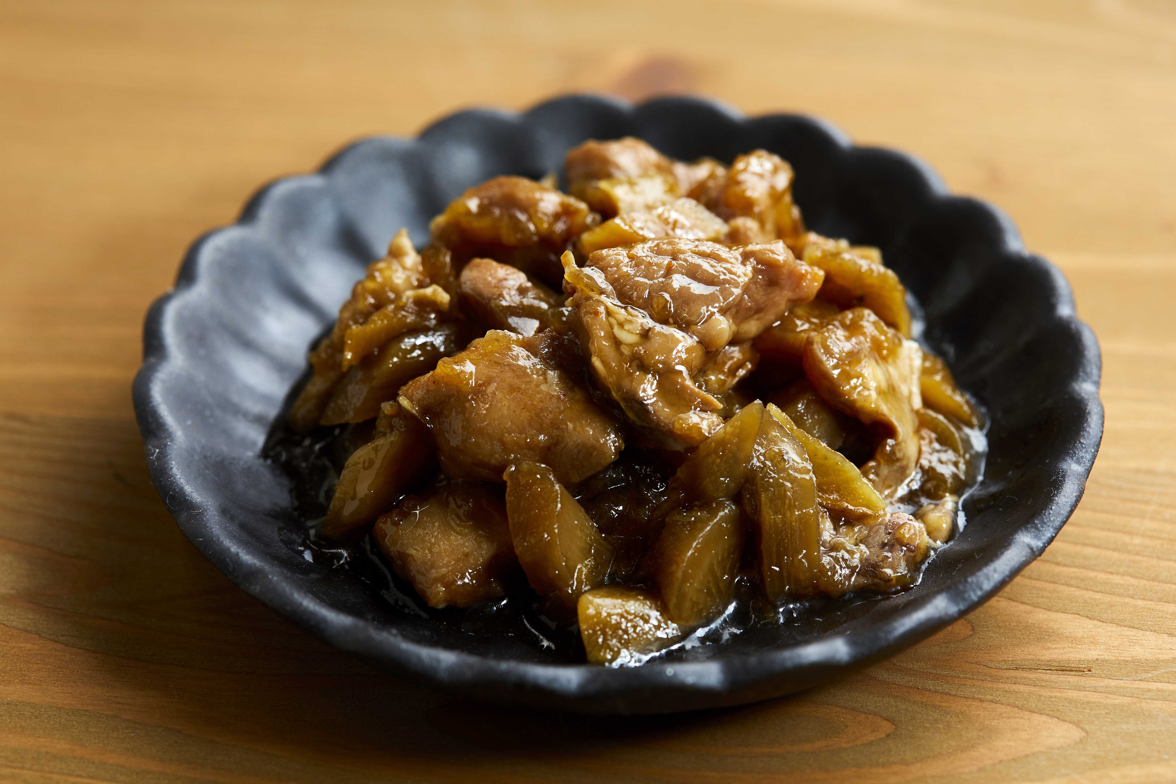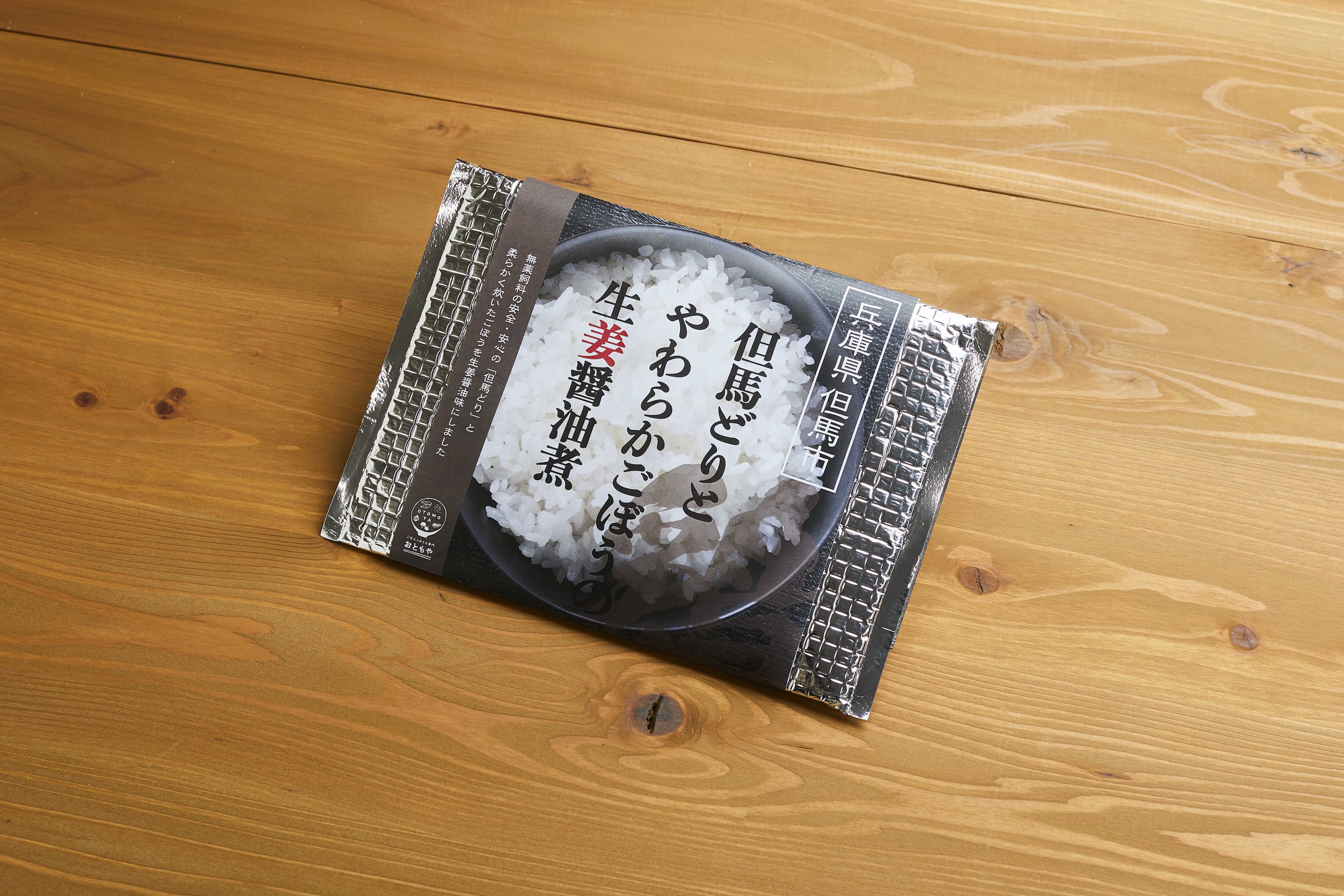 無薬飼料の安全・安心の「但馬どり」と柔らかく炊いたごぼうを生姜醤油味にしました。